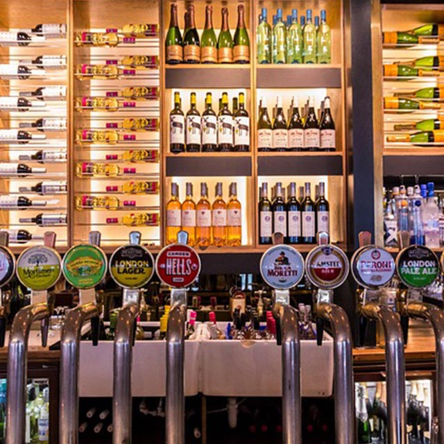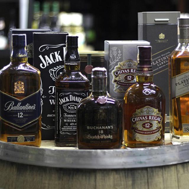 Wide range of spirits, wine, and beer for duty-free sales.